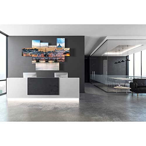 quadro moderno Roma e Castel Sant Angelo é un quadro moderno tridimensionale composto da 7 pannelli. Dimensione totale (LxHxS): 173cm x 117 cm x 5.6 cm. (4 verticali 3 orizzontali)