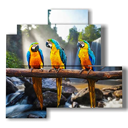 quadri con uccelli pappagalli é un quadro moderno tridimensionale composto da 4 pannelli. Dimensione totale (LxHxS): 83cm x 78 cm x 5.6 cm. (2 verticali 2 orizzontali)