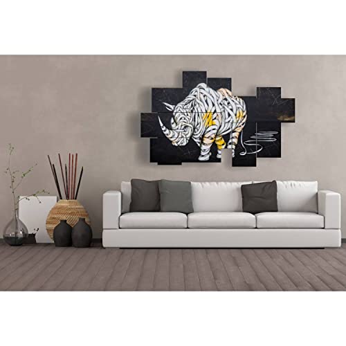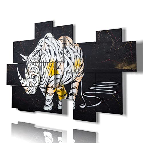 Duudaart quadro rinoceronte moderno e multilivello 3d quadri moderni animali astratti stampa da parete per soggiorno e camera da letto