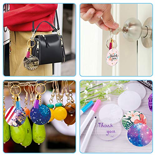 Duufin 120 Pezzi Dischi Acrilici Portachiavi Kit con Dischi Acrilici a Cerchio Trasparente, Portachiavi Anelli, Anelli Aperti di Salto, Ciondolo di Nappe per Portachiavi DIY