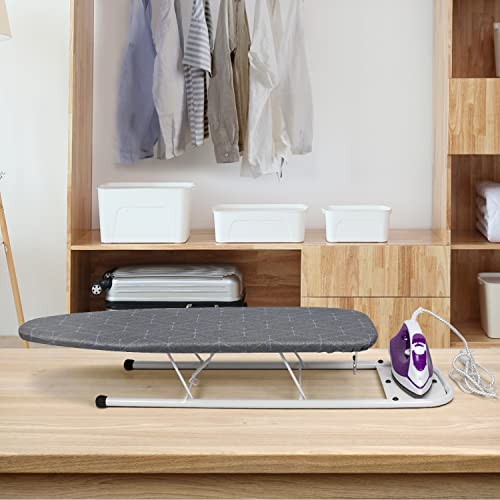 Duwee Asse da stiro da tavolo con poggia ferro, piccolo asse da stiro resistente al calore con feltro spesso, compatto e leggero, grigio, 32 x 82 cm