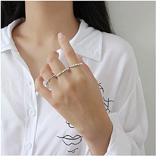 Duyifan 2pcs Anxiety Sterling Silver 10 Bead Ring, Stress Reliever Spinner Ring, S990 Sterling Silver Bead Ring, Relieving Boredom Autism Fidget Ring for Woman (M)