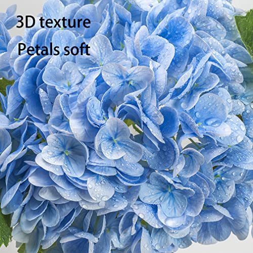 DUYONE 3 ortensie artificiali realistiche da 53,3 cm, fiori secchi realistici al tatto, fiori secchi per esterni, matrimoni, Natale, ufficio, feste di famiglia, soggiorno, decorazione da tavolo (blu)