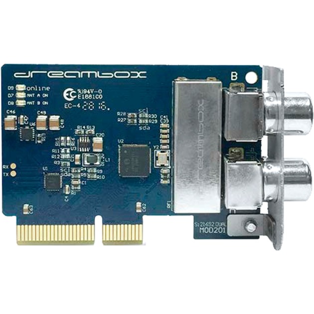 Il Dual DVB-C/T2 Twin Tuner trasforma un Dreambox in un potente doppio cavo o ricevitore terrestre in pochissimo tempo. Il sintonizzatore plug & play ha due ingressi DVB-C/T ed è facilmente inseribile nello slot previsto
