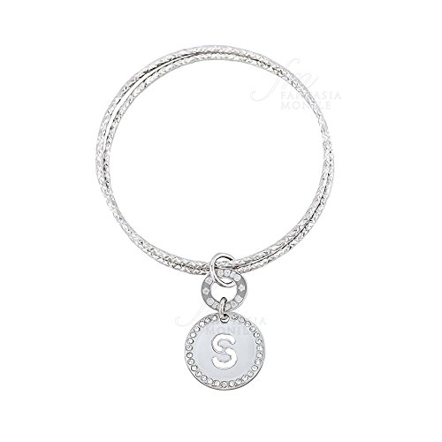 DVCCIO Bracciale Donna Cerchi Rigidi Charm Cerchio Cristalli Argento 925 Lettera S HH88RFM