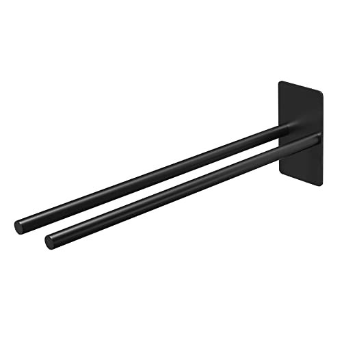 Dvocel Portasciugamani senza fori, nero opaco, asta portasciugamani autoadesivo, in acciaio inox, doppio portasciugamani a 2 bracci, montaggio a parete, per bagno e cucina