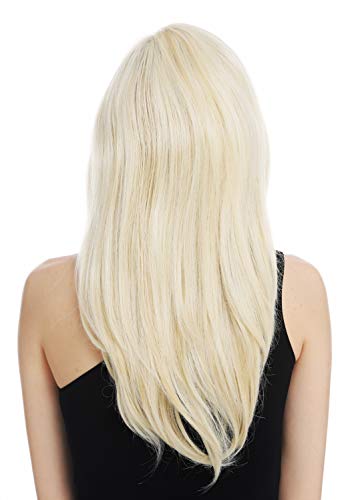 Parrucca da donna di alta qualità, interamente lavorata a mano, con lunghi capelli lisci biondo platino con lowlights biondo oro. Questo modello ha una cappa costituita completamente da monofilamento e da un lace front, consentendo un comfort ottimale e maggiore libertà di pettinatura.