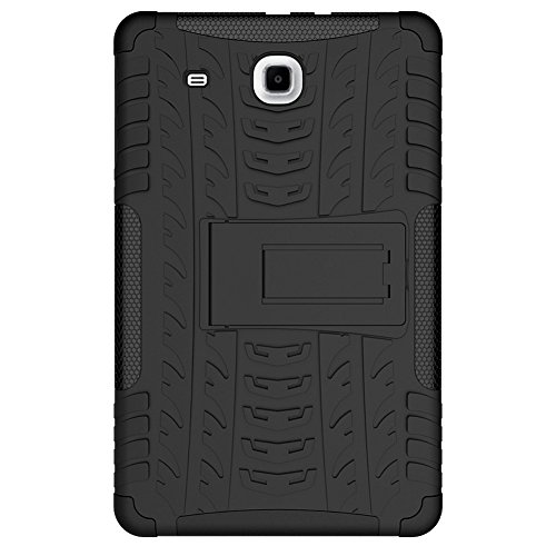 DWaybox Tab E 9.6" Cover Hybrid Rugged Heavy Duty Armor Hard Back Cover Custodia per Samsung Galaxy Tab E 9.6 Inches 2015 SM-T560/T561 Stand Custodia with Kickstand (Black)