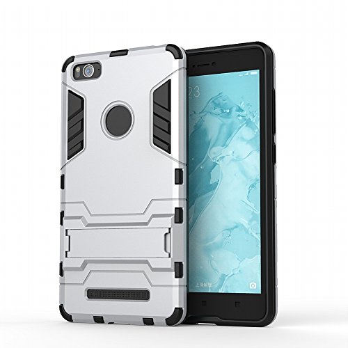 DWaybox Xiaomi Mi 4C Hybrid Custodia Armor Design con Stand-up Feature 2 In 1 Combo Dual Layer Detachable Protective Shell Phone Hard Back Custodia Cover Case per Xiaomi Mi 4C & Mi4C (Silver)