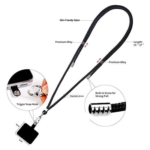Dwuikwea EU Cordino per Telefono,Regolabile Cordino Tracolla Universale Catena per Cellulare Adatta a Tutti gli Smartphone, Catena da Appendere, Cover con Cordino, Cinghia per Cellulare(Nero)