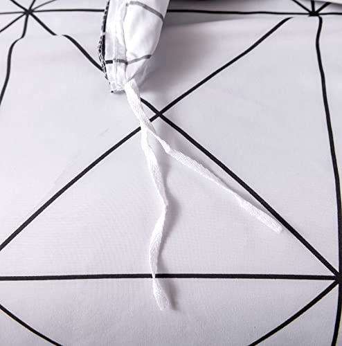 DXHOME Biancheria da letto a quadri, 135 x 200 cm, bianco e grigio, 2 pezzi, con chiusura lampo, motivo geometrico, in microfibra, moderna, reversibile, per ragazzi e ragazzi