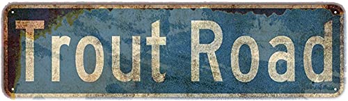 J.DXHYA Targa in metallo, con scritta in lingua inglese "Trout Road", stile rustico, stile retrò, decorazione da parete, bar, 10,2 x 40,6 cm, targa vintage