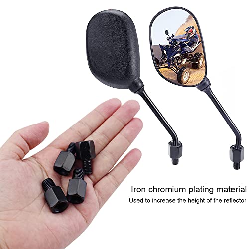 【Materiale】: l'adattatore per specchietto retrovisore per moto è realizzato in materiale cromato di ferro. Forte durezza, non facile da danneggiare e rompere. Lega di alta qualità, rivestimento elettrolitico nero, doppia protezione.