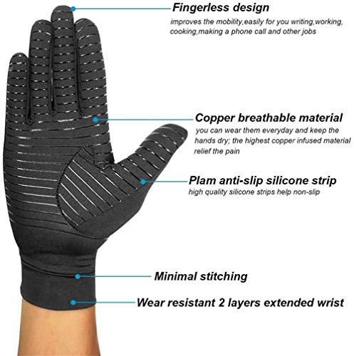 DYHQQ Guanti a Compressione per artrite per artrite per Donne e Uomini Touch Screen a Dita Complete Guanti per artrite infusa di Rame per alleviare Il Dolore da artrite,S