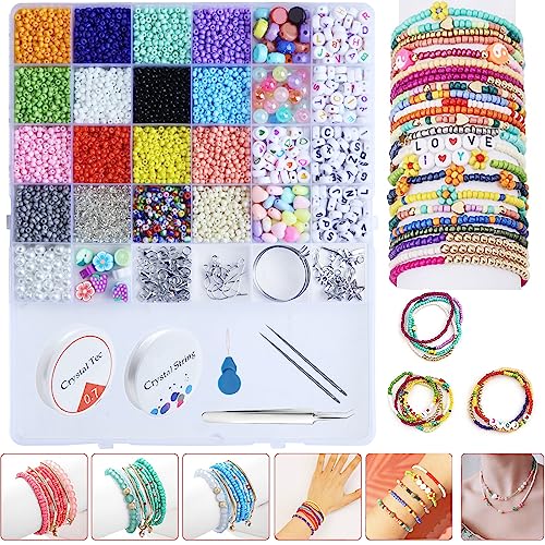 DYKJGSGO Perline per Braccialetti, Perline Colorate, 12000 Pezzi 3mm Perline per Bigiotteria Fai da Te, Perline per Collane, Kit Perline di Vetro, Perline con Lettere per Bambini, Adulti (B)