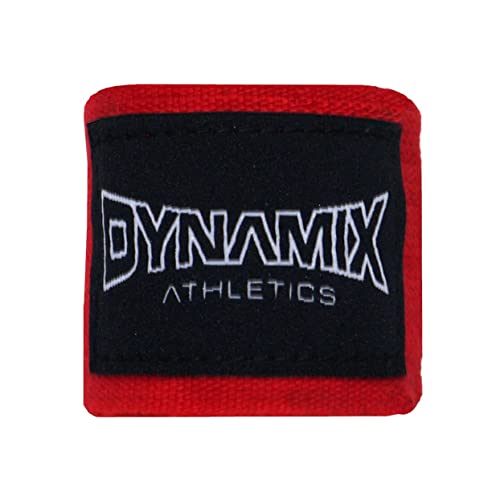 Dynamix Athletics Bendaggi elastici per le mani per bambini, 1,50 m, per boxe, Muay Thai Sparring - Passante per pollice e chiusura in velcro (rosso)