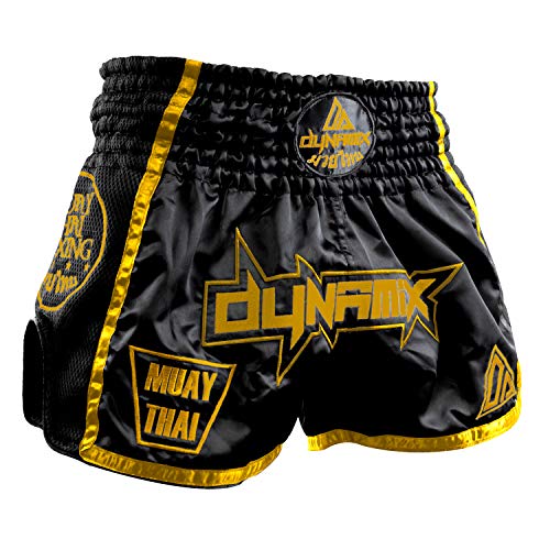 Dynamix Athletics Muay Thai Shorts Warpath - Gold Edition - Premium Thai Short per Thaibox Tradizionali Thaibox Pantaloni da Uomo (L)