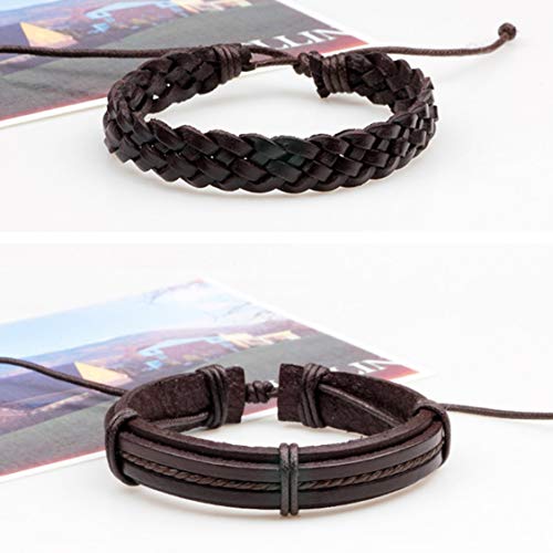 Dynamovolition - Set di 6 braccialetti da uomo multistrato in pelle PU intrecciata, stile casual, ideale come regalo di compleanno
