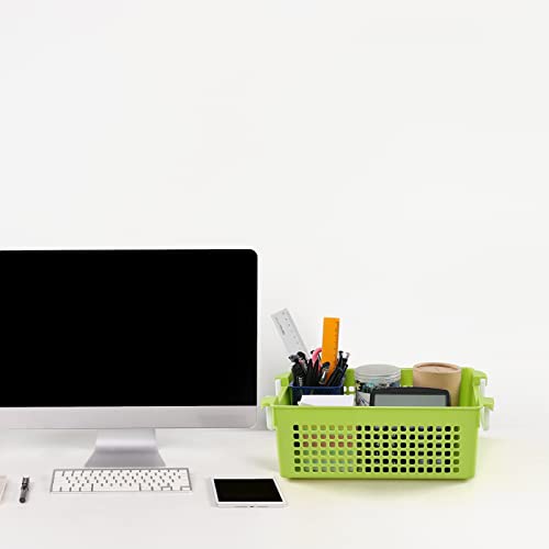 Dynko Cesto Portaoggetti in Plastica, Cestello Impilabile di Stoccaggio, Bianca, Confezione da 6