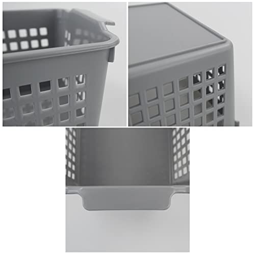 Dynko Cesto Portaoggetti in Plastica, Set di 6 Grigio e Trasparente Cesta Rettangolare