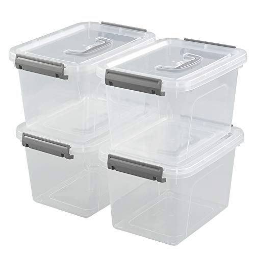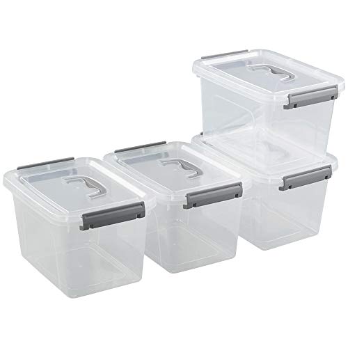 Dynko Set di 4 Scatola Portaoggetti in Plastica, Scatola Rettangolare, Contenitore Trasparente (Grigio)
