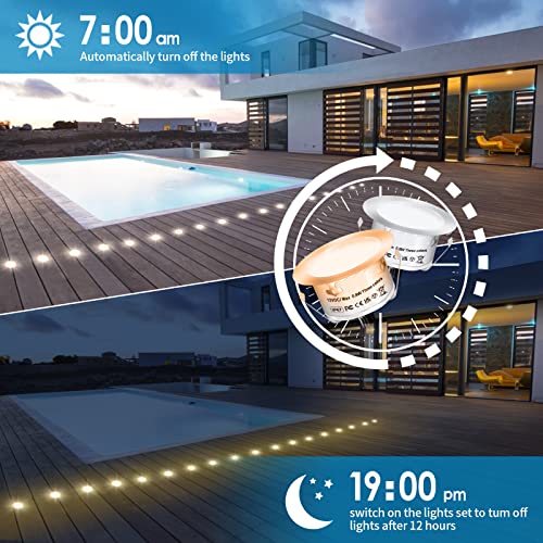 Dystaval Set di 12 faretti da incasso per terrazze, con telecomando, dimmerabili, per esterni, IP67, impermeabile, 0,8 W, diametro 42 mm, per giardino, passerella, scale