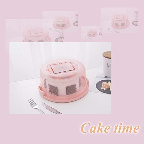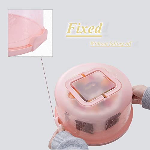 DZDSBB Porta Torta con Coperchio,Porta Torta con Coperchio da Trasporto,Porta Torta con Coperchio Plastica,Cake Holder with Lid,Contenitore per Torte Rotondo con Manico,25x21x13cm (Rosa)