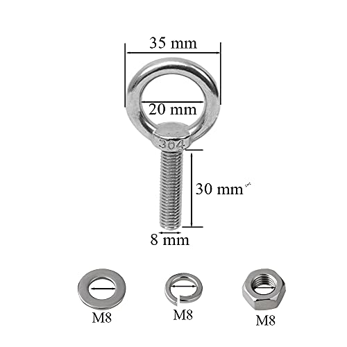 La confezione include: il set di bullone per sollevamento contiene 4 golfari M8, 4 controdadi, 4 rondelle di sicurezza e 4 rondelle.