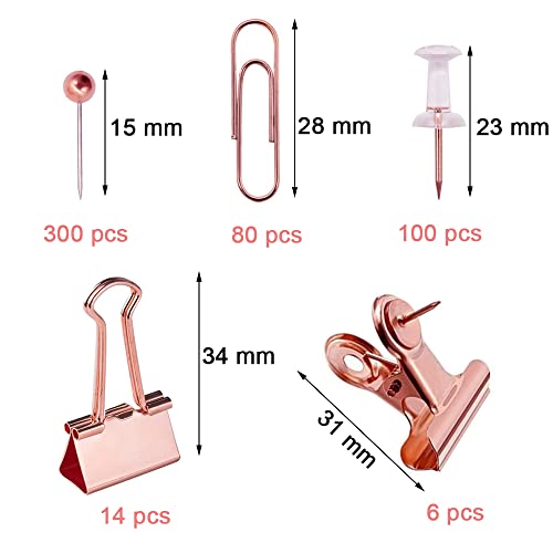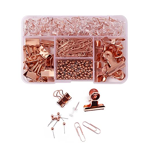 Dzsomt Set di Cancelleria per Ufficio in Oro Rosa 500 Pezzi Perni di Spinta Clip per Raccoglitori Clip per Carta Clip Metallo Bulldog Clips Fermafogli Set di Cancelleria per Ufficio the Office Gadget