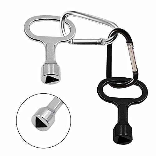 Dzsomt Chiavi Triangolari 4 Pezzi Chiave Triangolare Chiavi Triangolari in Metallo con D Moschettoni Universale Chiave per Armadio Elettrico Chiave Chiave Contatore Gas, Nero e Argento