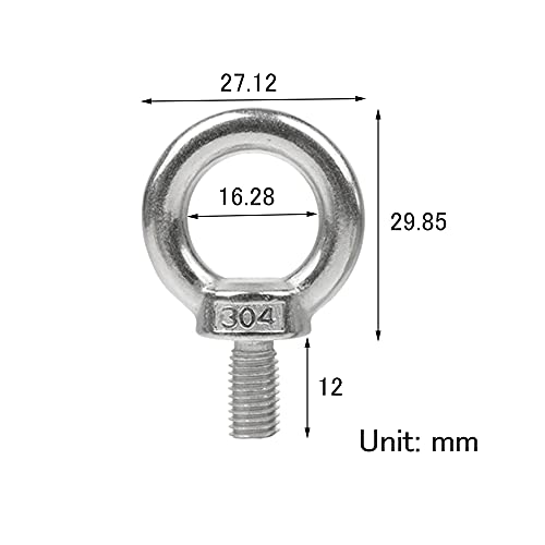 Dimensioni del golfare in acciaio inossidabile 304: il diametro interno dell'anello è 16,28 mm, il diametro esterno dell'anello è 27,12 mm e la lunghezza della filettatura è 12 mm.