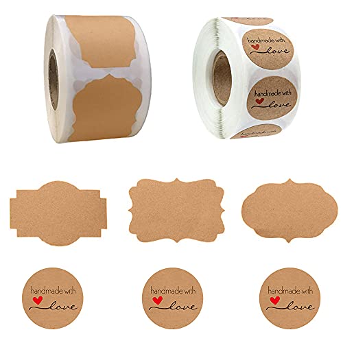 800 pezzi di etichette in carta kraft: 300 pezzi di adesivi di forma irregolare + 500 pezzi di adesivi rotondi.