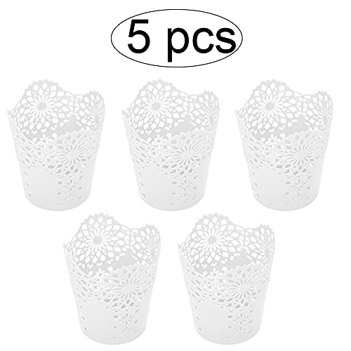 Dzsomt 5 Pezzi Porta Pennelli da Trucco Portapenne da Scrivania Organizer Bianco Motivo a Fiore Cava Portapenne Porta Penne Rotonda Porta Penne Portapenne da Scrivania Organizer da Scrivania