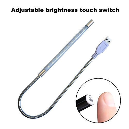 DZYDZR Portable USB Lampada LED Dimmerabile, USB 5V 1W Touch Switch Flessibile 10 LEDs Bianco Lampada per Computer Portatile PC (Argento)