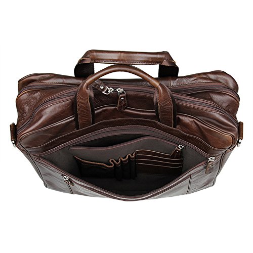 E-Bestar borsa in vero Cuoio genuino pelle Tempo Libero escursioni Doppio Manico Porta Università Vintage Max per 17 pollici laptop computer (Marrone)