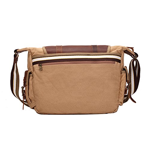 E-Bestar Borsa uomo donna unisex a tracolla spalla tasca cartella Shoulder Bag tela sacchetto per PC portatile l'ufficio tempo libero aperto (Cachi)