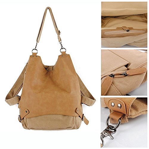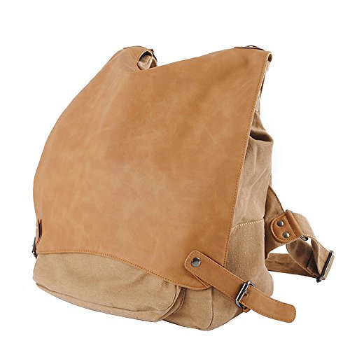 E-Bestar Borsa Zaino Backpack Cartella a Spalla Tracolla Cachi in in pelle Nabuck naturale Uomo Donna Unisex borsa Vintage per Scuola Viaggi Escursioni (Cachi)