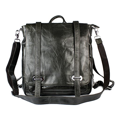E-Bestar Borsa Zaino Backpack Rucksack Cartella a Spalla Tracolla Cachi in Pelle Cuoio Uomo Donna Unisex Vintage per Scuola Viaggi Escursioni Laptop zaino (Nero)