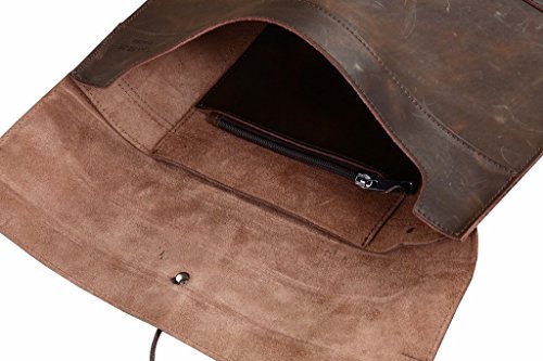 E-Bestar Vero cuoio genuino pelle buste da lettera Borsa dell'uomo di affari a mano per Ipad Carta A4 documento (Marrone Scuro)