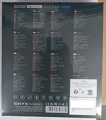 BOOX Note Air2 Plus 10,3" E-book Tablet Android 11 Luce Frontale 64GB G-sensor WiFi BT OTG