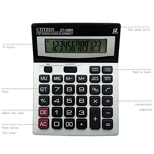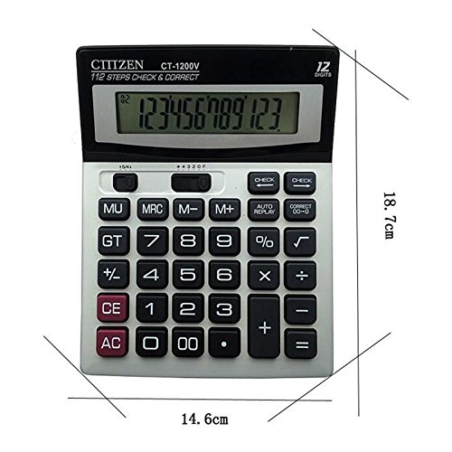 E-cholife Calcolatrice, doppia alimentazione 12-cifre ampio Display Standard dell'ufficio calcolatrici da tavolo CT-1200V Argento.