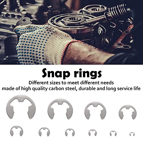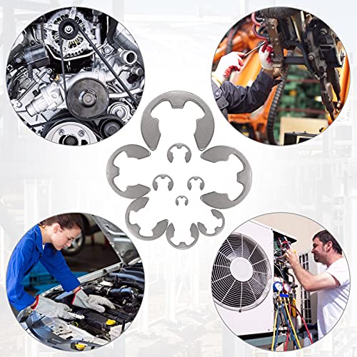 Fermagli di ritenzione Secure Hold: Le clip di fissaggio E-Clip fissano i componenti agli alberi o agli alloggiamenti e sono adatte per una varietà di compiti di fissaggio in officina o a casa.