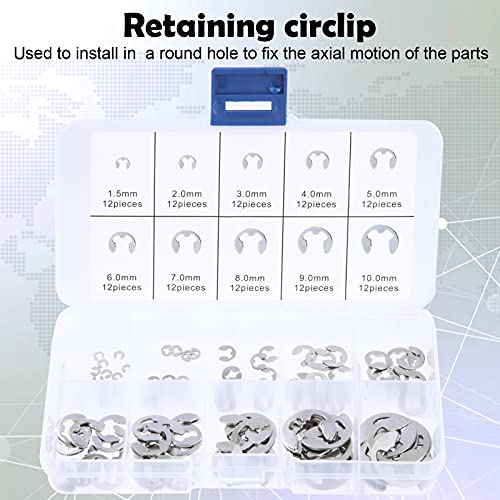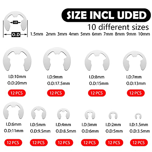 E-clip Esterna Anello Sicurezza In Acciaio Inox, 120 pezzi 10 Dimensioni Snap Anello di Sicurezza Interno Snap Anello Assortimento Kit 1,5 mm - 10 mm per Officina Tuttofare