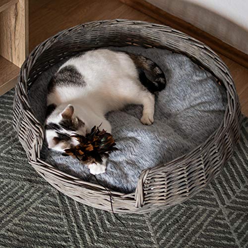 RM E-Commerce, cuccia per cani e gatti, in vimini, diametro 65 cm, con cuscino grigio, per cani e gatti