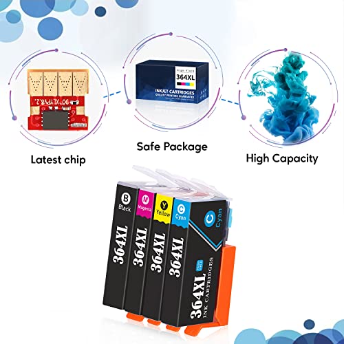 E-Eejetch 364XL Cartucce d'inchiostro Compatibili per HP 364 XL per HP Photosmart 5510 5520 5522 5524 6520 7520 b110a, Officejet 4620 4622 4610, Deskjet 3070A 3520 (Nero Ciano Magenta Giallo,4-Pack)