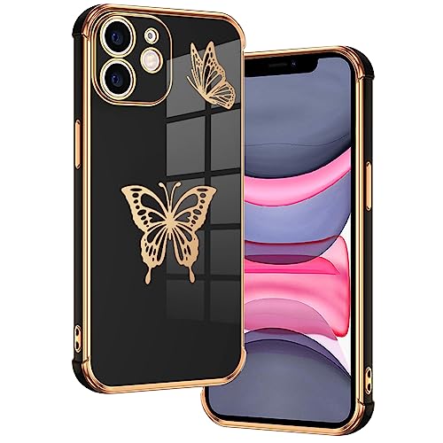 Design Galvanico Glitterato -- Cover iPhone 11 silicone, che utilizza la tecnologia galvanica, cover posteriore con motivo farfalle, un bellissimo bordo placcato in oro circonda con grazia i bordi del paraurti e i bordi della fotocamera, custodie per cellulari iPhone 11 che brillano alla luce o alla luce del sole, aspetto nobile e bello. Rendere il vostro telefono un eye-catcher.