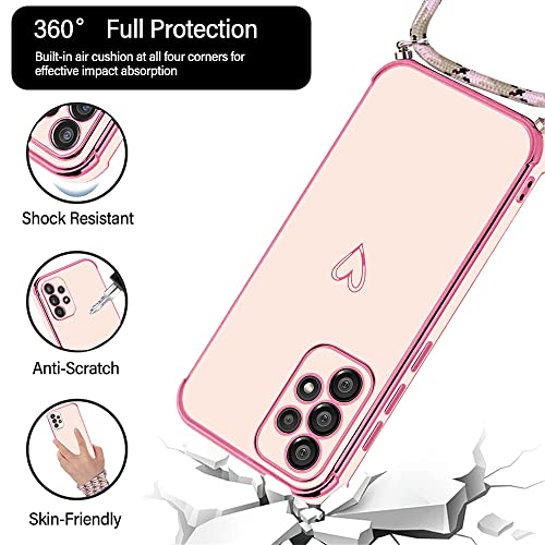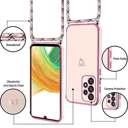 E-Lush Cover per Samsung A33 5G con Cordino, Ultra Sottile Cuore Amore Elettrolitico Cover per Samsung Galaxy A33 5G, Morbido TPU Silicone Custodia con Regolabile Collana Antiurto Case, Oro Rosa