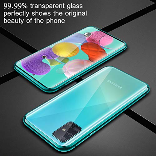 E-Lush Custodia per Samsung Galaxy A51 Cover Adsorbimento Magnetico Anteriore + Posteriore Vetro Temperato Case, Custodia 2 in 1 360° Full Body Protection Bumper Alluminio Metallo Trasparente Flip
