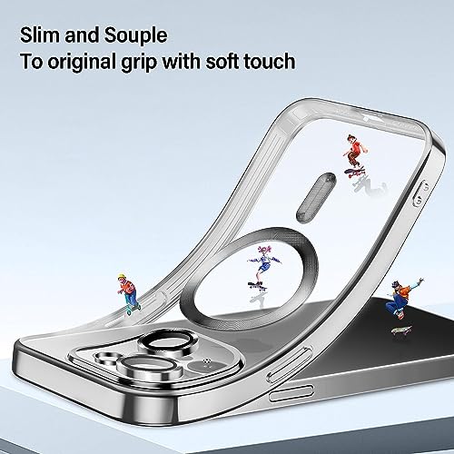 E-Lush Magnetica Cover per iPhone 13, Trasparente Custodia Compatibile con MagSafe Ricarica Wireless Cover per iPhone 13 Silicone Sottile Antiurto Protettiva Case, Argento