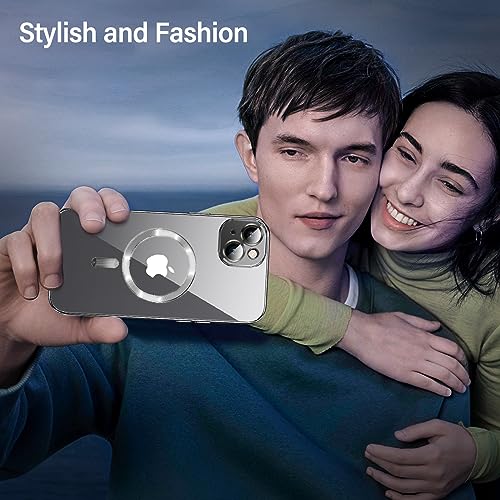 Design Elegante -- Questa magnetica trasparente per iPhone 13 cover il processo di galvanica, ricoperto da un rivestimento oleorepellente e anti-giallo, che rendono la custodia anti-impronte e mai gialla;